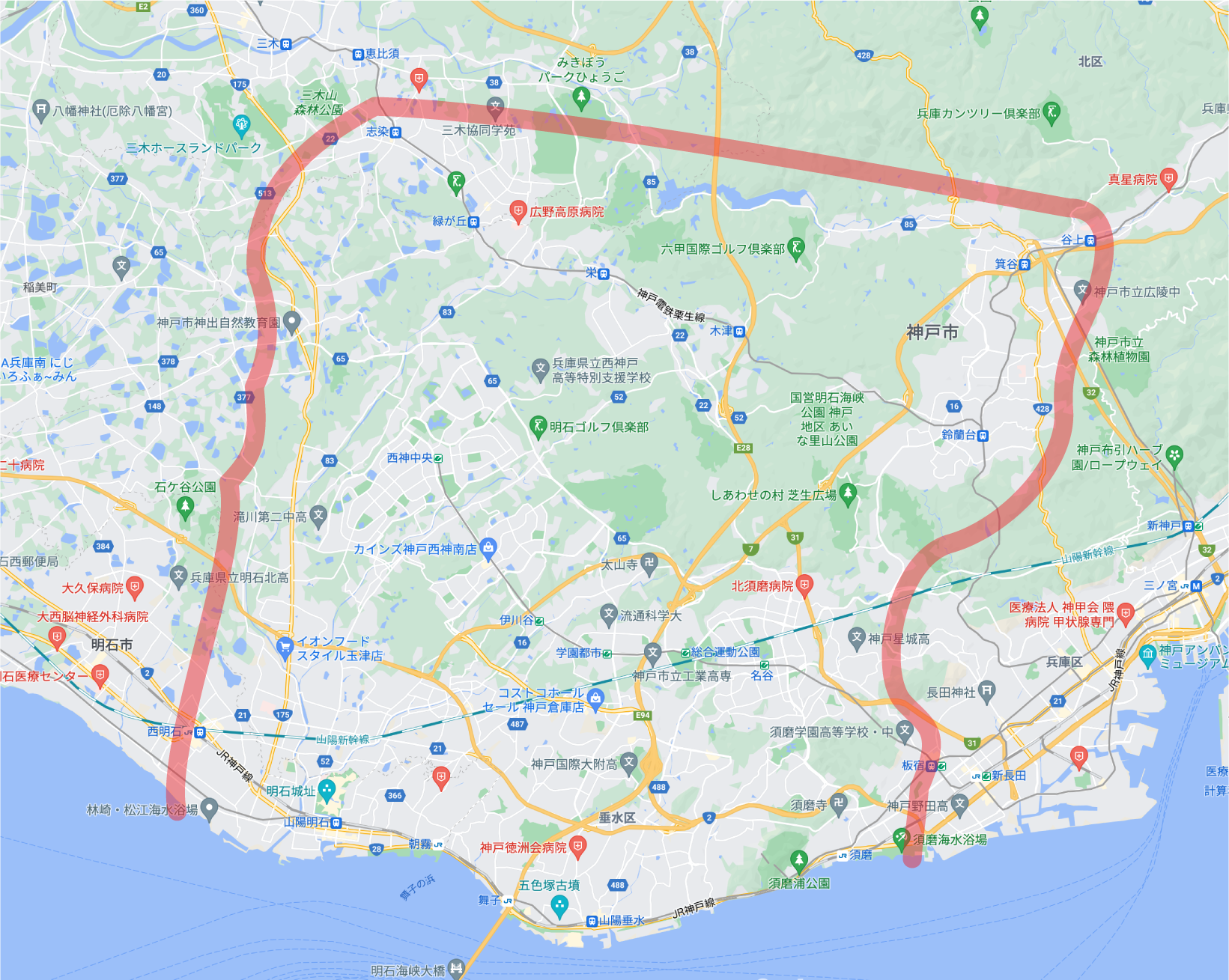 神戸市西区、垂水区、須磨区の全域