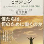 2020年2月10日 / 最終更新日時 : 2020年3月4日 H.Yokoyama 幸せをお届けするブログ 使命は人生を豊かにする。「MISSION ミッション」(岩田松雄)から こんにちは! 今回の読書は「MISSION ミッション」。 著者は元スターバックスコーヒージャパンCEOの岩田松雄氏。 ミッションとは使命のことになります。 企業がいかに社会のためになるかを問う。 それがミッションになり […]