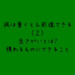 2020年2月9日 / 最終更新日時 : 2020年3月4日 H.Yokoyama 幸せをお届けするブログ 病が重くとも前進できる(2)生きがいとはなに?携わる者にできること こんにちは! 今回は、生きがいとはなにか?病の方に携わる者として何ができるのか?といったことについてのおはなしです。 以前の記事「病が重くとも前進できる(1)」のその後の話になります。 わたしがデイサービスをやめることで […]